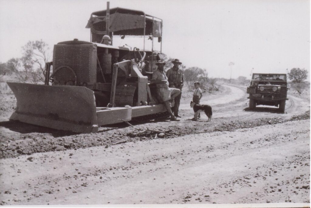 Len Beadell’s big yellow Cat D8 dozer was used to construct the Gunbarrel Highway in the 1950s with Doug Stoneham driving and Len Beadell surveying.